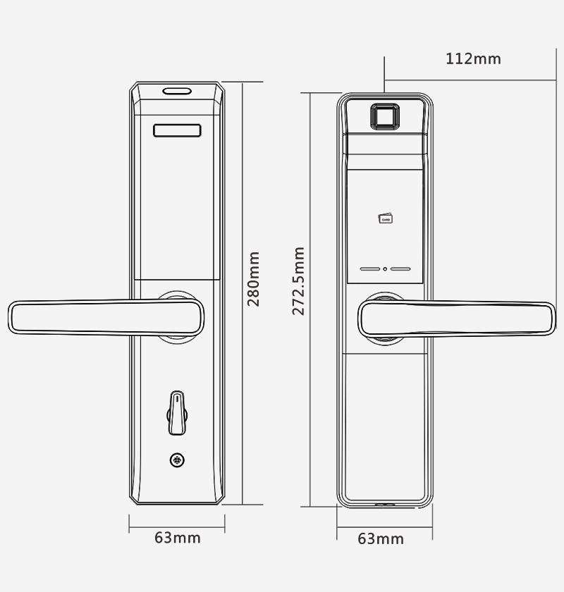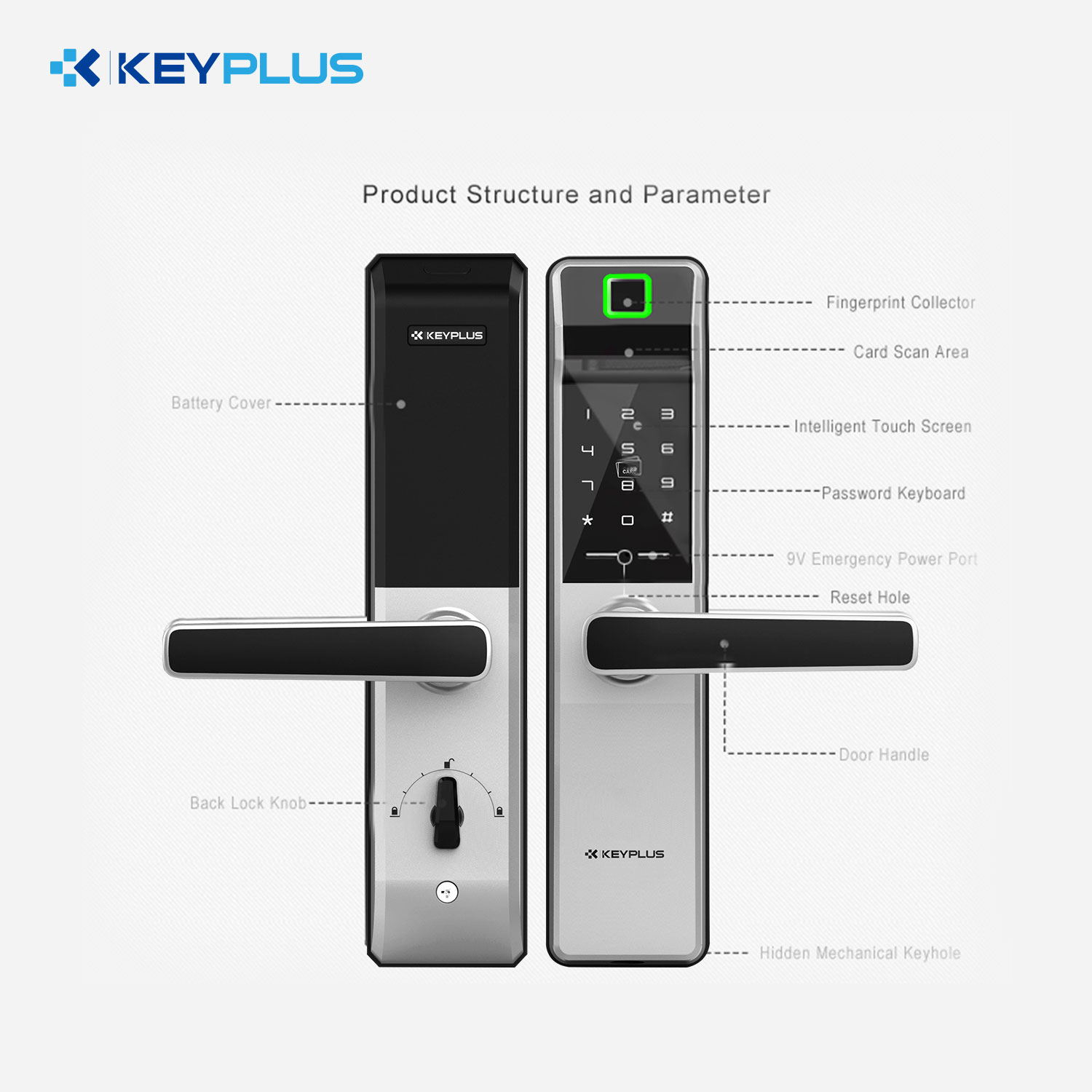Aspetto sottile e design alla moda della curvatura, che adotta materiale in lega di zinco di alta qualità per la piastra anteriore e posteriore inclusa la maniglia.Supporta la smart card ad alta frequenza (Mifare) o a bassa frequenza (RF).